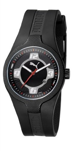 This Puma watch is an excellent time piece the represents what Puma is all about. Resin case and black polyurethane inlay band makes this watch look great on anyone. Featuring a black dial with luminous hands, arabic numerals, and a date display between the 4 and 5 o'clock markers. This watch is water resistant to 50 meters (165 feet).